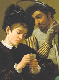 prostitute. Questa è la nota leggenda della vita di Michelangelo Merisi, detto Caravaggio dal luogo da cui proveniva, creata ad arte dai biografi a cui però il materiale non ebbe mai a mancare. Ma oggi, sfrondata da qualsiasi intento di parte e grazie alla ricchezza di scoperte e di studi sul pittore, resta la vicenda di una personalità fedele a principi che effettivamente contrastavano non tanto con la morale comune, quanto con l’indirizzo culturale delle istituzioni del tempo. Malgrado questo, fin dagli esordi trovò potenti estimatori che ne promossero le idee, prima che la pittura. Il cardinale Francesco Maria Del Monte, Vincenzo Giustiniani, i fratelli Mattei erano tutti parte di una congerie nella quale andavano sviluppandosi le stesse speculazioni per le quali l’Inquisizione perseguiterà l’altra grande personalità del tempo, l’altro padre della modernità, Galileo Galilei, anch’egli un protetto di Del Monte, altra faccia della stessa medaglia. Michelangelo Merisi nacque il 29 settembre 1571 a Milano, figlio di Lucia Aratori e Fermo Merisi, architetto, sovrintendente e amministratore di casa di Francesco Sforza, appartenente a un ramo cadetto dell’importante dinastia milanese e marchese di Caravaggio, una cittadina a pochi chilometri di distanza da Milano. (dal saggio di Francesca Marini) |