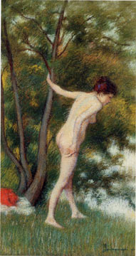 Il bagno nel bosco (Baigneuse) Pastello, 44x24 cm. Collezione privata P 236 (Mi 1988)