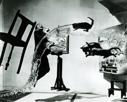 Halsman, Salvador Dalì vola in aria con gatti, acqua e altri oggetti |