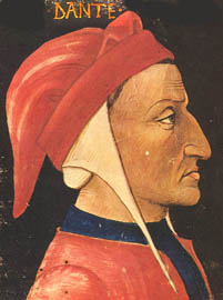 | Giovanni del Ponte, attribuito, Ritratto di Dante, cod. Riccardiano 1040, Biblioteca Riccardiana, Firenze | Luca Signorelli, Dante, part. affresco della cappella di San Brizio, Duomo, Orvieto | |