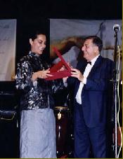 L’ambasciatore d’Italia, Vittorio Pennarola consegna il Premio “ITALIA NEL MONDO” 1998 alla coreografa Raffaella Rossellini